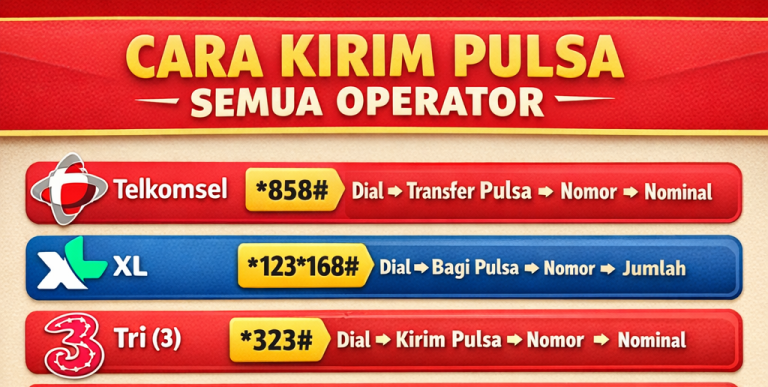 1. Telkomsel β Telkomsel Bisa lewat dial USSD atau SMS Cara 1 (paling cepat) Cara 2 (SMS) Kirim SMS ke 858 Format: Contoh: 2. XL β XL Melalui dial telepon. Atau langsung: Contoh: 3. Three (Tri) β Three Menggunakan Bagi Pulsa β Catatan penting: Berikut tabel cara kirim pulsa semua operator di Indonesia supaya mudah…